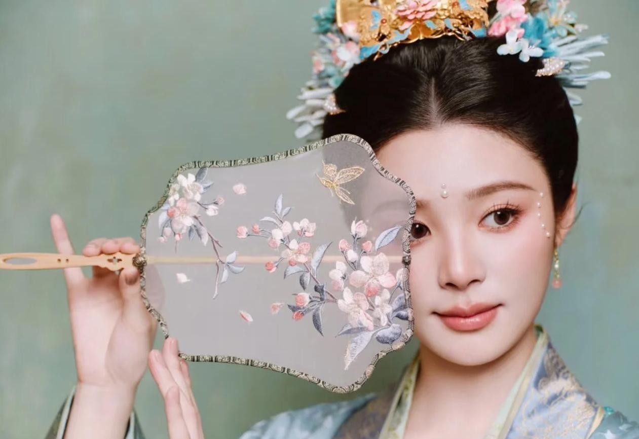身着复原宋制褙子与褙裙,头戴非遗花丝镶嵌步摇,举手投足宛若《瑞鹤图》中缓步而出。